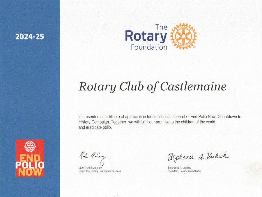 Thanks to Jane, and the six other Polio Plus Society members in our Club, we are now another step closer to eradicating polio.